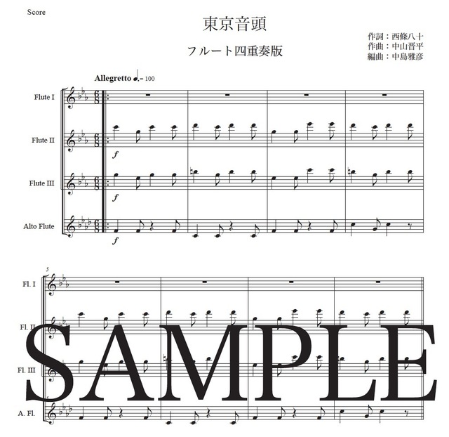 中山晋平 「東京音頭」フルート四重奏版 コンビニプリント対応