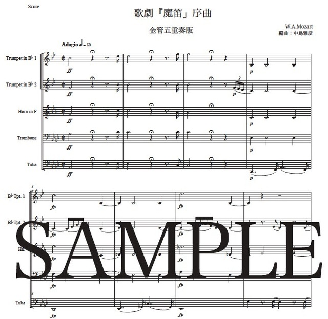 モーツァルト「歌劇『魔笛』序曲」金管五重奏版 コンビニプリント対応
