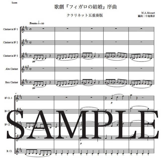 モーツァルト「歌劇『フィガロの結婚』序曲」クラリネット五重奏版 コンビニプリント対応