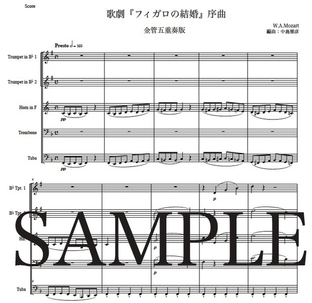 モーツァルト「歌劇『フィガロの結婚』序曲」金管五重奏版 コンビニプリント対応