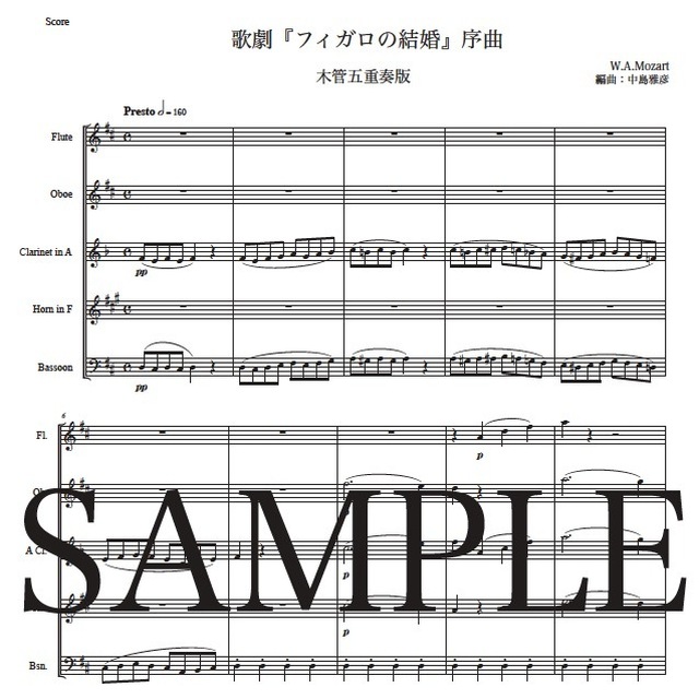 モーツァルト「歌劇『フィガロの結婚』序曲」木管五重奏版New コンビニプリント対応