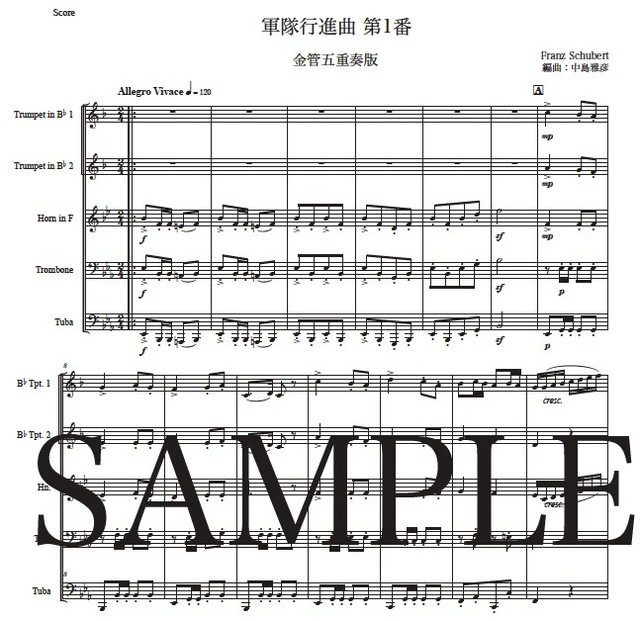 シューベルト「軍隊行進曲第1番」金管五重奏版 コンビニプリント対応