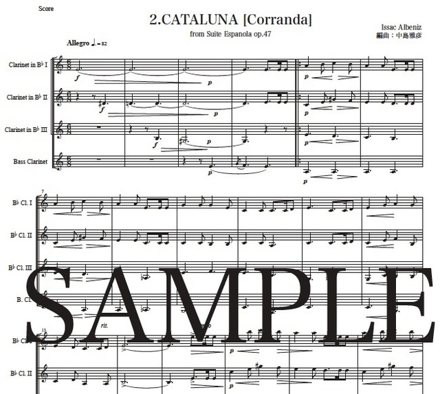 アルベニス「カタルーニャ(コランダ)」クラリネット四重奏版 コンビニプリント対応