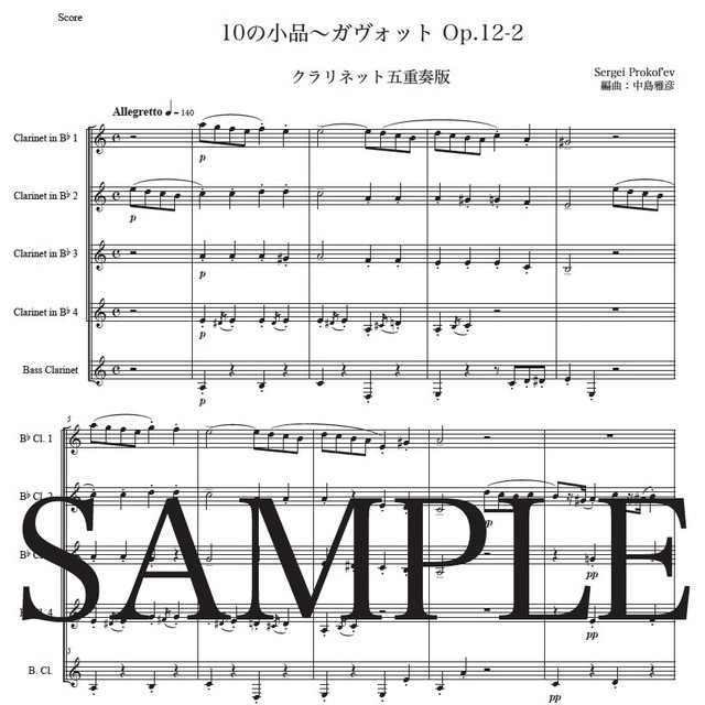 プロコフィエフ「10の小品~ガヴォット」クラリネット五重奏版 コンビニプリント対応