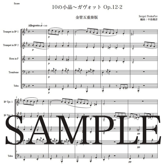 プロコフィエフ「10の小品~ガヴォット」金管五重奏版 コンビニプリント対応
