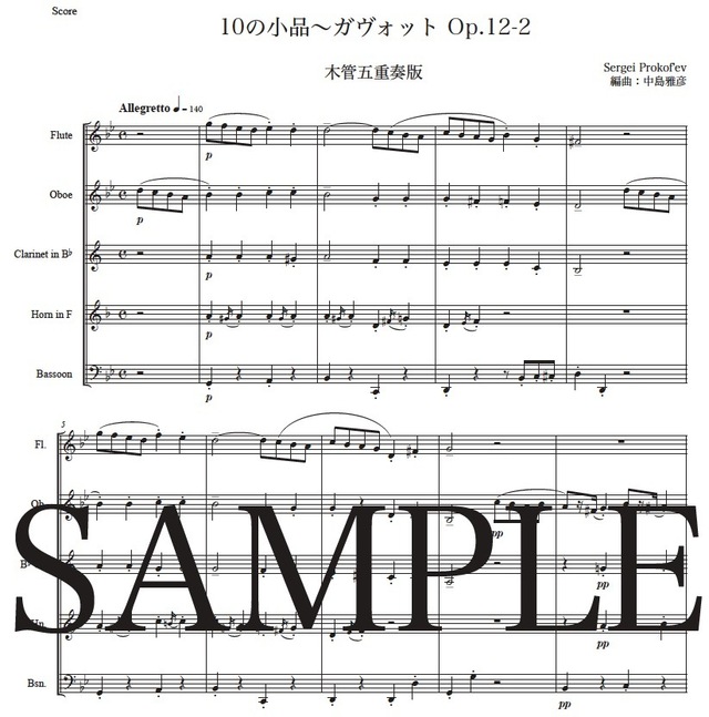 プロコフィエフ「10の小品~ガヴォット」木管五重奏版 コンビニプリント対応
