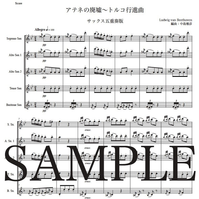 ベートーヴェン「トルコ行進曲」サックス五重奏版 コンビニプリント対応
