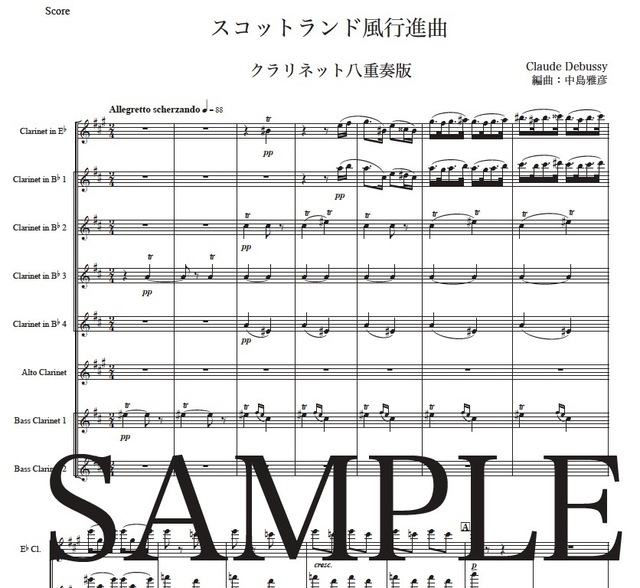 ドビュッシー「スコットランド風行進曲」クラリネット八重奏版 コンビニプリント対応