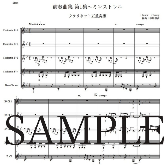 ドビュッシー「ミンストレル」クラリネット五重奏版 コンビニプリント対応