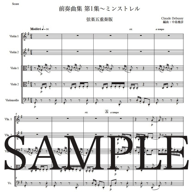 ドビュッシー「ミンストレル」弦楽五重奏版 コンビニプリント対応