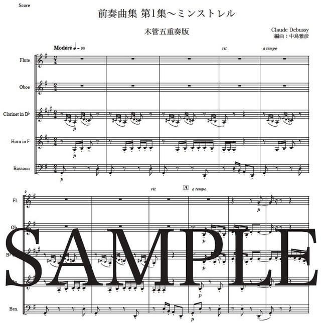 ドビュッシー「ミンストレル」木管五重奏版 コンビニプリント対応
