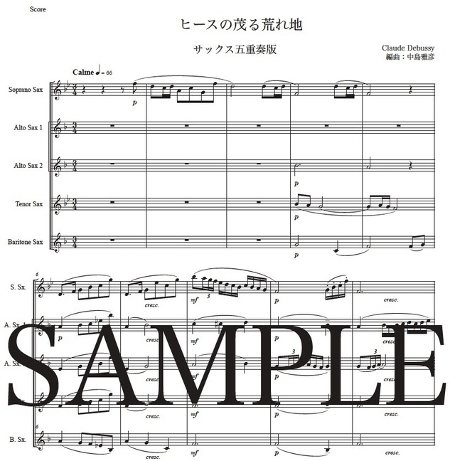 ドビュッシー「ヒースの茂る荒れ地」サックス五重奏版 コンビニプリント対応