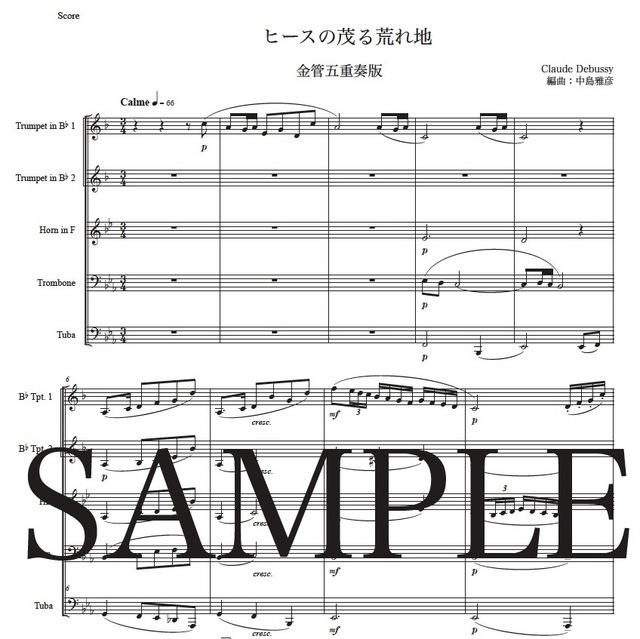 ドビュッシー「ヒースの茂る荒れ地」金管五重奏版 コンビニプリント対応
