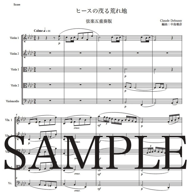 ドビュッシー「ヒースの茂る荒れ地」弦楽五重奏版 コンビニプリント対応