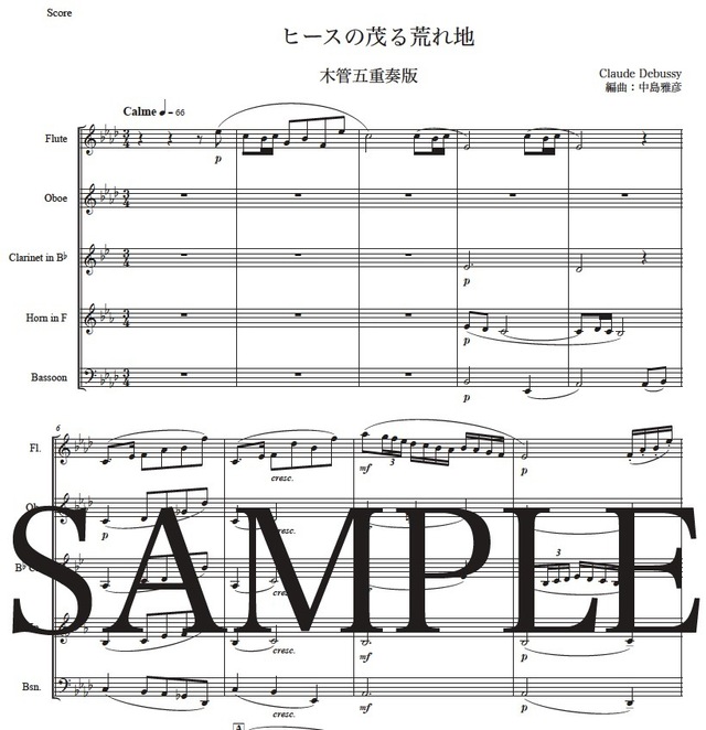 ドビュッシー「ヒースの茂る荒れ地」木管五重奏版 コンビニプリント対応