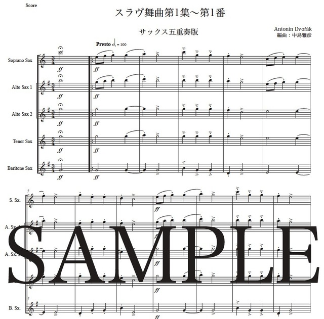 ドヴォルザーク「スラヴ舞曲第1番」サックス五重奏版 コンビニプリント対応
