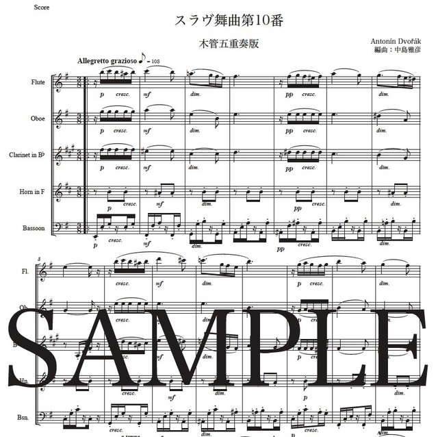 ドヴォルザーク「スラヴ舞曲第10番」木管五重奏版 コンビニプリント対応