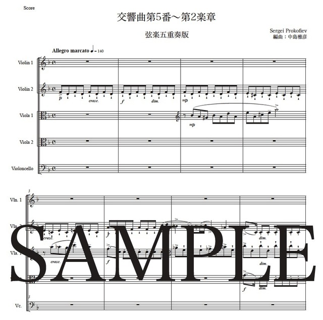 プロコフィエフ「交響曲第5番~第2楽章」弦楽五重奏版 コンビニプリント対応