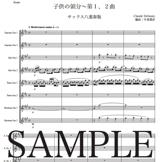 ドビュッシー「子供の領分~第1,2曲」サックス八重奏版 コンビニプリント対応