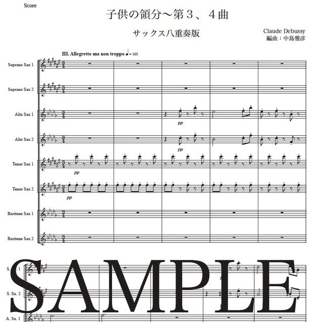 ドビュッシー「子供の領分~第3,4曲」サックス八重奏版 コンビニプリント対応