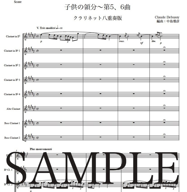 ドビュッシー「子供の領分~第5,6曲」クラリネット八重奏版 コンビニプリント対応