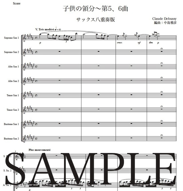 ドビュッシー「子供の領分~第5,6曲」サックス八重奏版 コンビニプリント対応