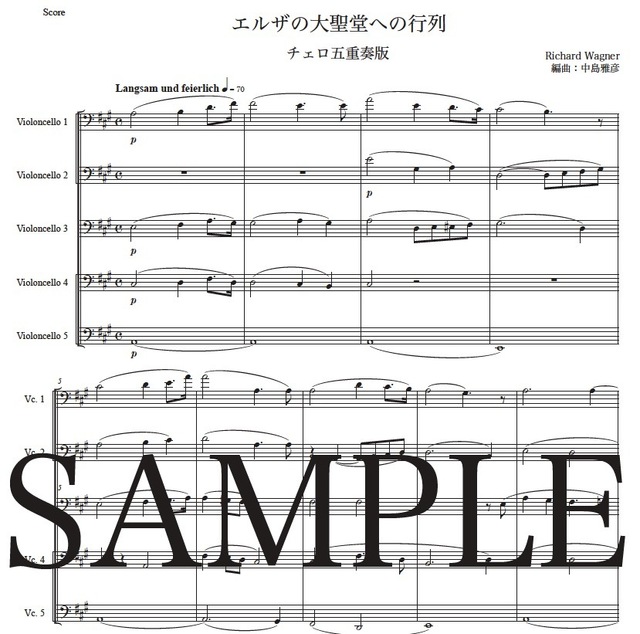 ワーグナー「エルザの大聖堂への入場」チェロ五重奏版 コンビニプリント対応