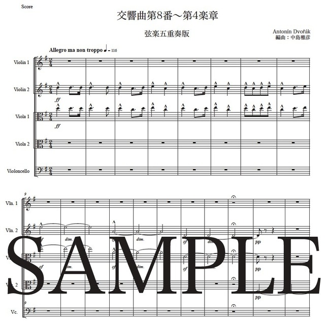 ドヴォルザーク「交響曲第8番~第4楽章」弦楽五重奏版 コンビニプリント対応