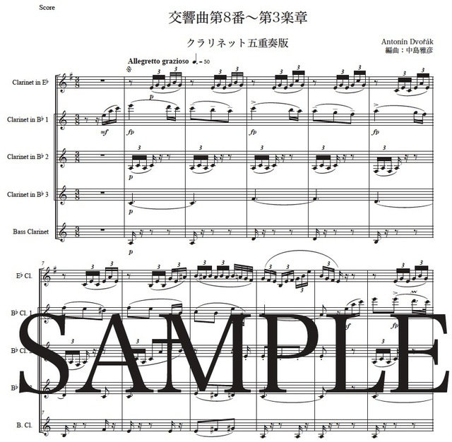 ドヴォルザーク「交響曲第8番~第3楽章」クラリネット五重奏版 コンビニプリント対応