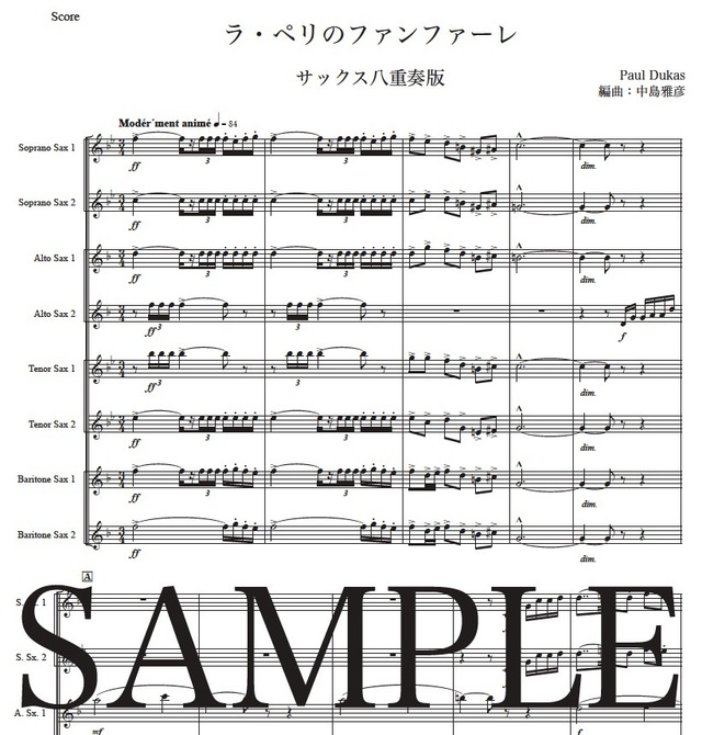 デュカス「ラ・ペリのファンファーレ」サックス八重奏版 コンビニプリント対応