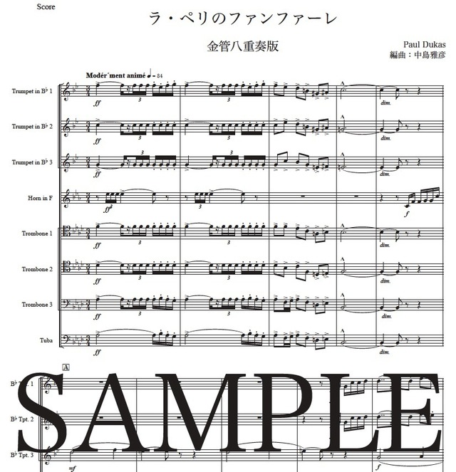 デュカス「ラ・ペリのファンファーレ」金管八重奏版 コンビニプリント対応