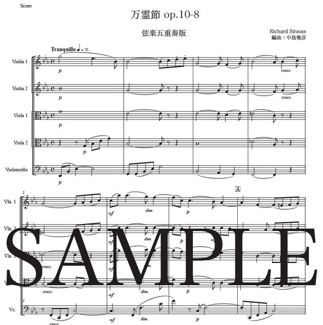 リヒャルト・シュトラウス「万霊節」弦楽五重奏版 コンビニプリント対応
