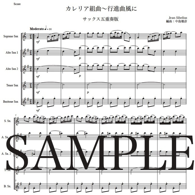 シベリウス「カレリア組曲~行進曲風に」サックス五重奏版 コンビニプリント対応