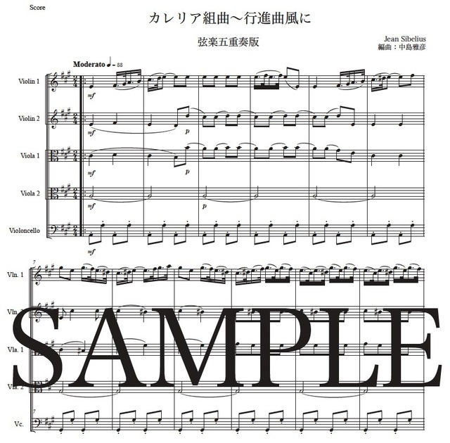 シベリウス「カレリア組曲~行進曲風に」弦楽五重奏版 コンビニプリント対応
