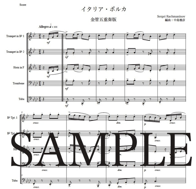 ラフマニノフ「イタリア・ポルカ」金管五重奏版 コンビニプリント対応