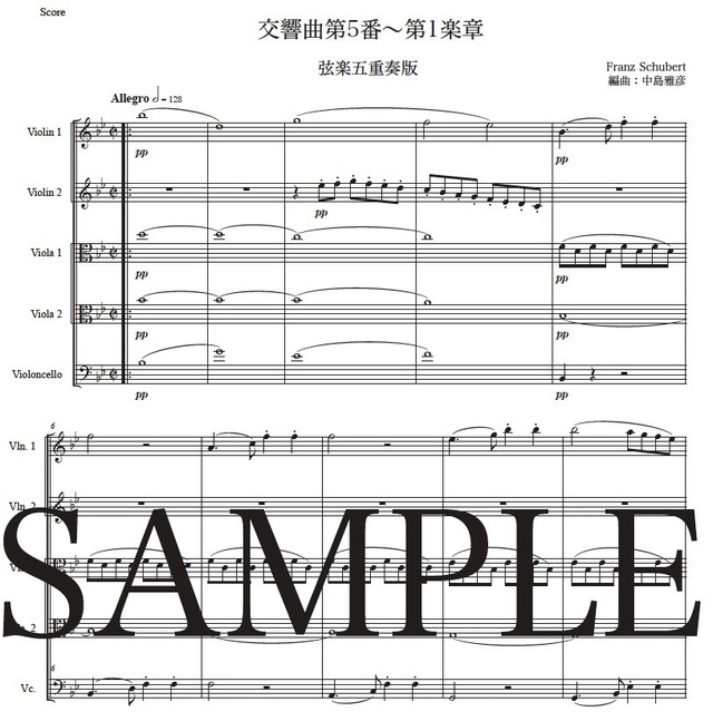 シューベルト「交響曲第5番~第1楽章」弦楽五重奏版 コンビニプリント対応