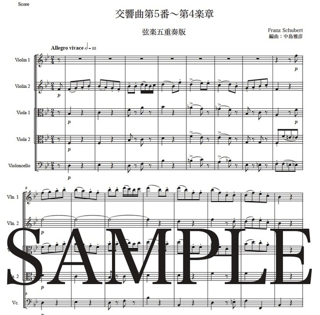 シューベルト「交響曲第5番~第4楽章」弦楽五重奏版 コンビニプリント対応