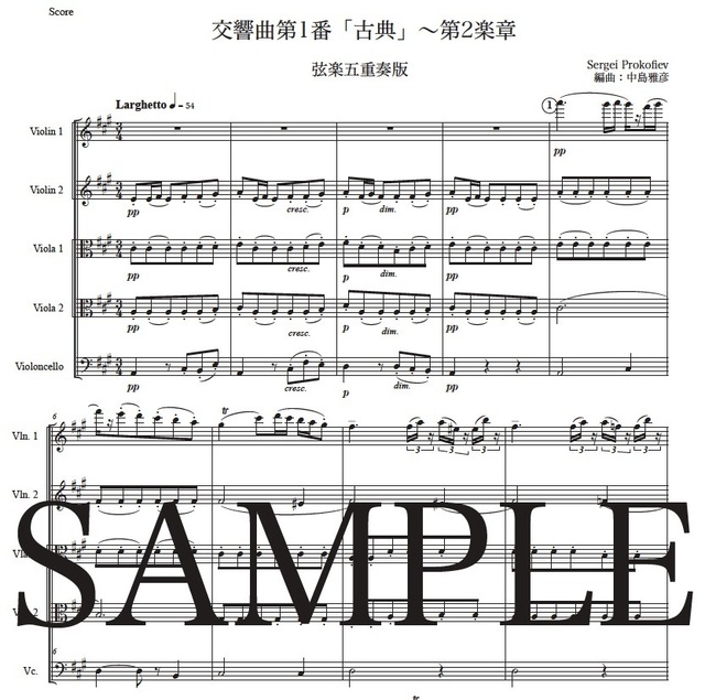 プロコフィエフ「古典交響曲~第2楽章」弦楽五重奏版 コンビニプリント対応