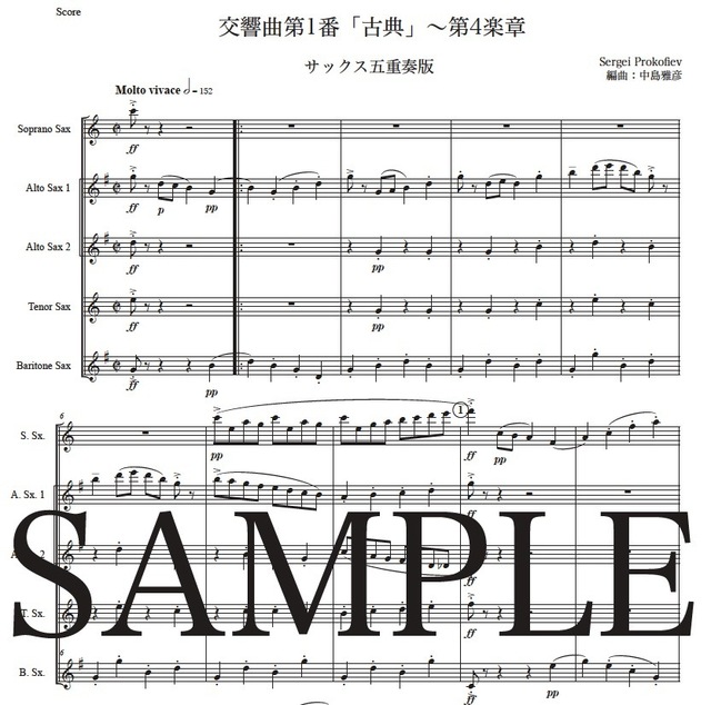 プロコフィエフ「古典交響曲~第4楽章」サックス五重奏版 コンビニプリント対応