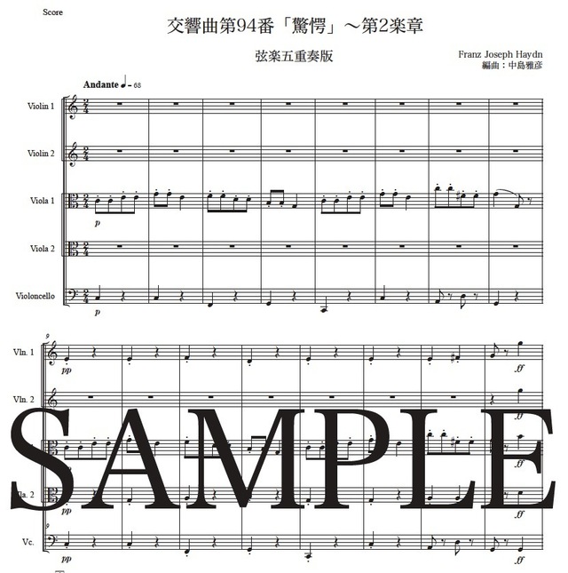 ハイドン「交響曲第94番『驚愕』~第2楽章」弦楽五重奏版 コンビニプリント対応