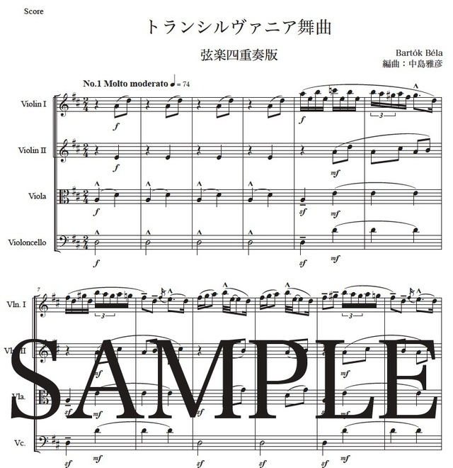 バルトーク「トランシルヴァニア舞曲」弦楽四重奏版 コンビニプリント対応