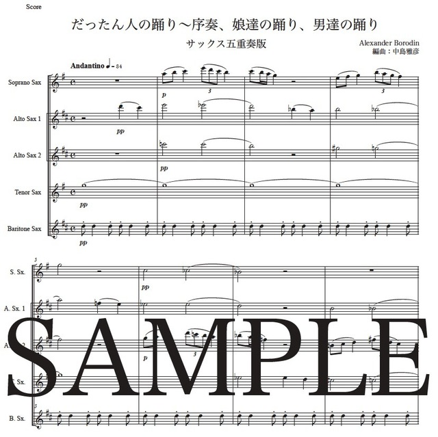 ボロディン「だったん人の踊り~序奏、娘達の踊り、男達の踊り」サックス五重奏版 コンビニプリント対応