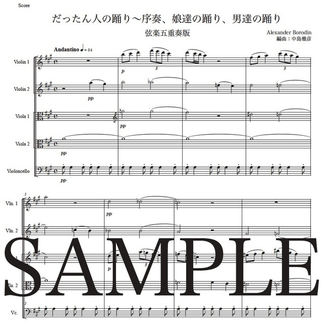 ボロディン「だったん人の踊り~序奏、娘達の踊り、男達の踊り」弦楽五重奏版 コンビニプリント対応