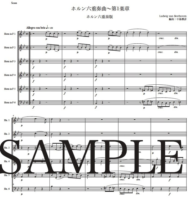 ベートーヴェン「ホルン六重奏曲~第1楽章」ホルン六重奏版 コンビニプリント対応