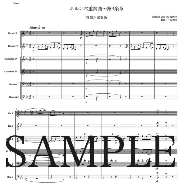 ベートーヴェン「ホルン六重奏曲~第3楽章」管楽六重奏版 コンビニプリント対応