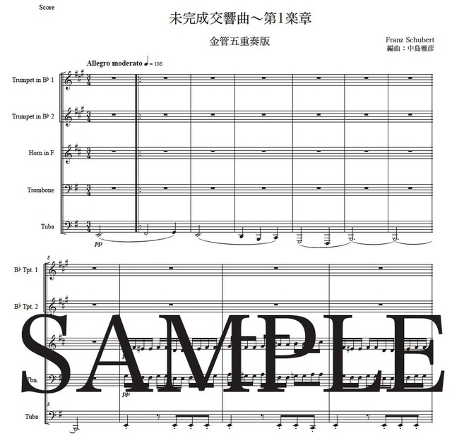 シューベルト「未完成交響曲~第1楽章」金管五重奏版 コンビニプリント対応