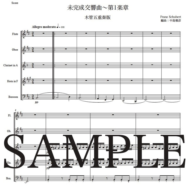シューベルト「未完成交響曲~第1楽章」木管五重奏版 コンビニプリント対応