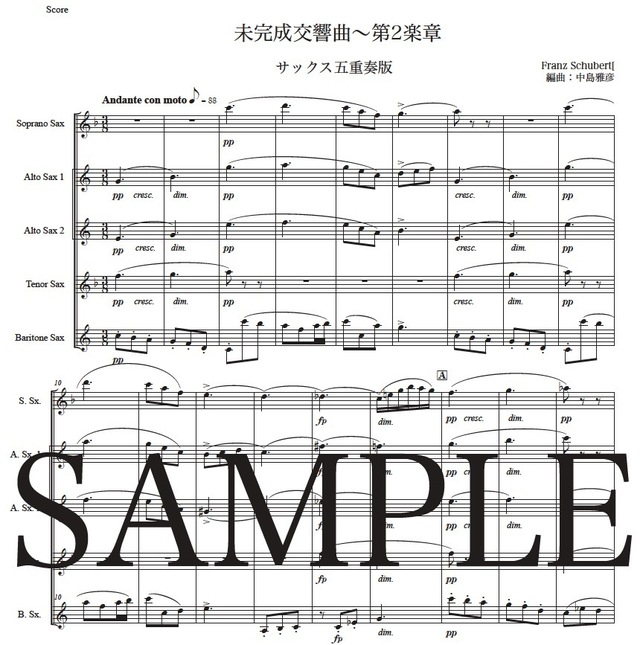 シューベルト「未完成交響曲~第2楽章」サックス五重奏版 コンビニプリント対応