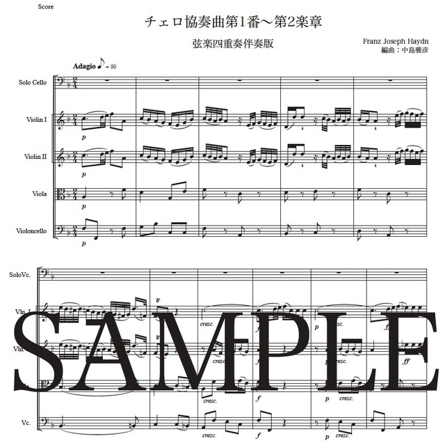 ハイドン「チェロ協奏曲第1番~第2楽章」弦楽四重奏伴奏版 コンビニプリント対応