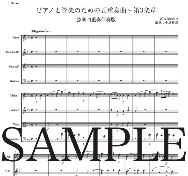 モーツァルト「ピアノと管楽のための五重奏曲~第3楽章」弦楽四重奏伴奏版 コンビニプリント対応